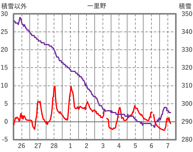 | 日 | 時 | 気温 | 降水 | 風向/風速 | 日照 | 積雪 | 降雪 |