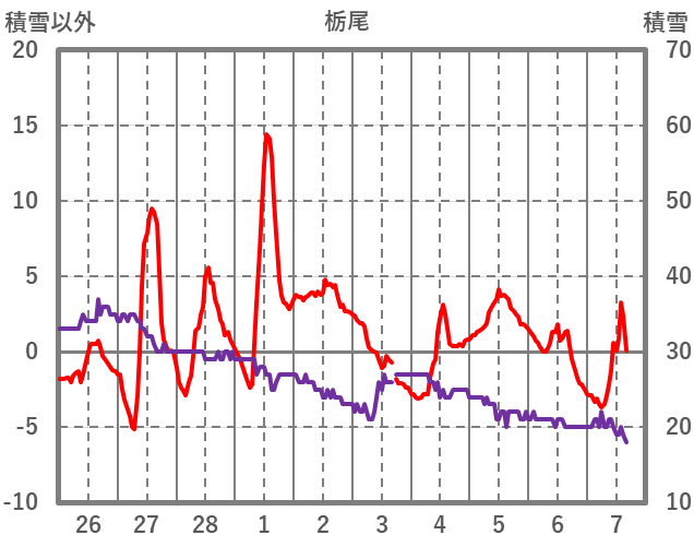 | 日 | 時 | 気温 | 降水 | 風向/風速 | 日照 | 積雪 | 降雪 |