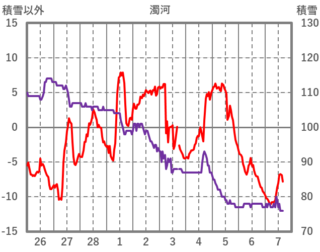 | 日 | 時 | 気温 | 降水 | 風向/風速 | 日照 | 積雪 | 降雪 |