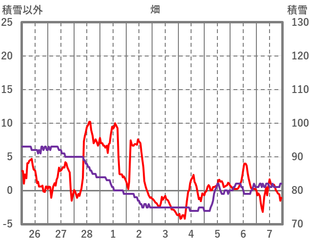 | 日 | 時 | 気温 | 降水 | 風向/風速 | 日照 | 積雪 | 降雪 |