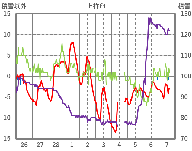 | 日 | 時 | 気温 | 降水 | 風向/風速 | 日照 | 積雪 | 降雪 |