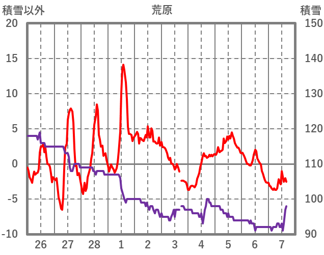 | 日 | 時 | 気温 | 降水 | 風向/風速 | 日照 | 積雪 | 降雪 |