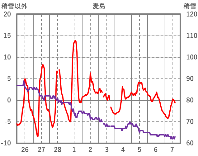 | 日 | 時 | 気温 | 降水 | 風向/風速 | 日照 | 積雪 | 降雪 |
