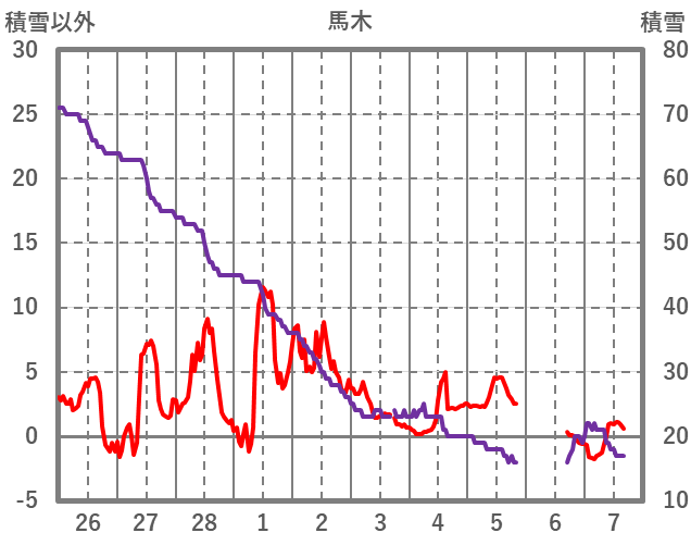 | 日 | 時 | 気温 | 降水 | 風向/風速 | 日照 | 積雪 | 降雪 |