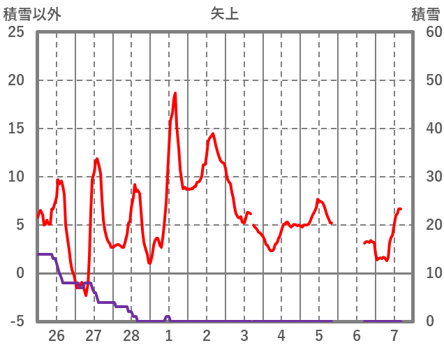 | 日 | 時 | 気温 | 降水 | 風向/風速 | 日照 | 積雪 | 降雪 |