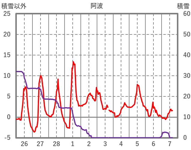 | 日 | 時 | 気温 | 降水 | 風向/風速 | 日照 | 積雪 | 降雪 |