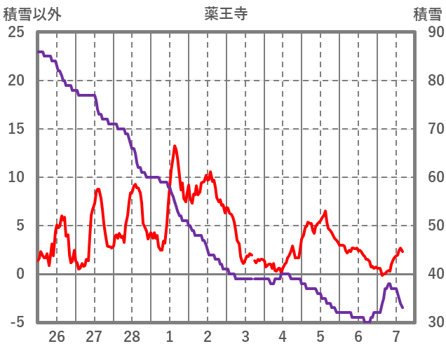 | 日 | 時 | 気温 | 降水 | 風向/風速 | 日照 | 積雪 | 降雪 |