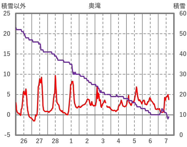 | 日 | 時 | 気温 | 降水 | 風向/風速 | 日照 | 積雪 | 降雪 |