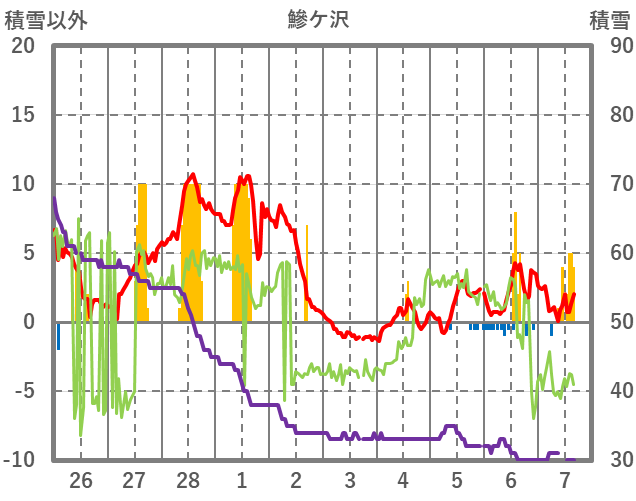 | 日 | 時 | 気温 | 降水 | 風向/風速 | 日照 | 積雪 | 降雪 |
