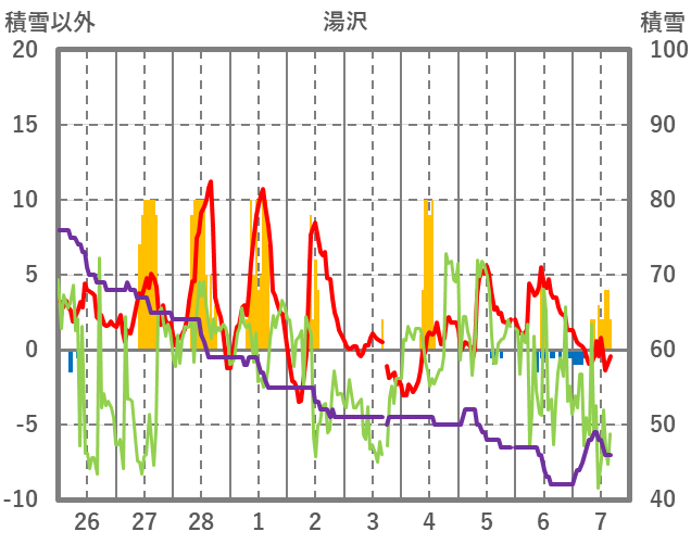 | 日 | 時 | 気温 | 降水 | 風向/風速 | 日照 | 積雪 | 降雪 |