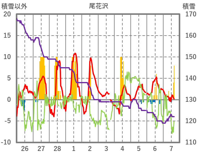 | 日 | 時 | 気温 | 降水 | 風向/風速 | 日照 | 積雪 | 降雪 |