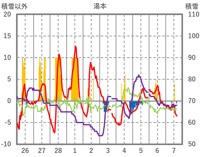 | 日 | 時 | 気温 | 降水 | 風向/風速 | 日照 | 積雪 | 降雪 |