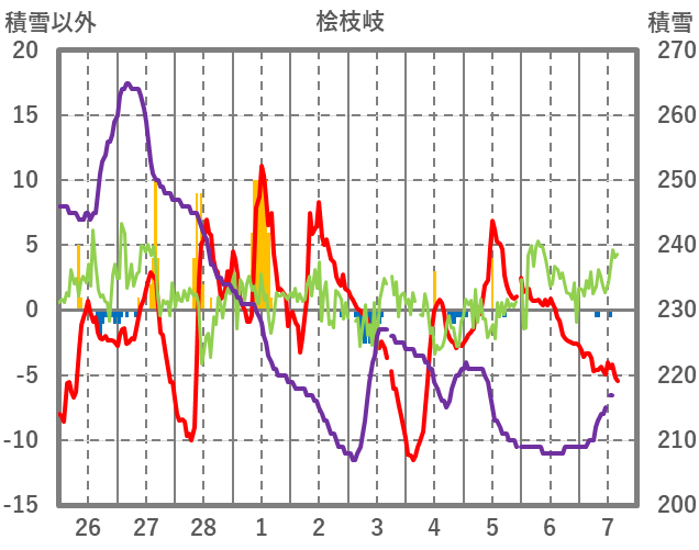 | 日 | 時 | 気温 | 降水 | 風向/風速 | 日照 | 積雪 | 降雪 |