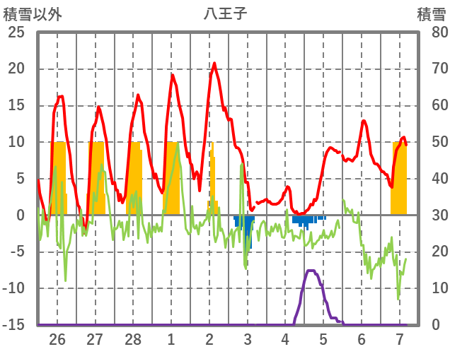 | 日 | 時 | 気温 | 降水 | 風向/風速 | 日照 | 積雪 | 降雪 |