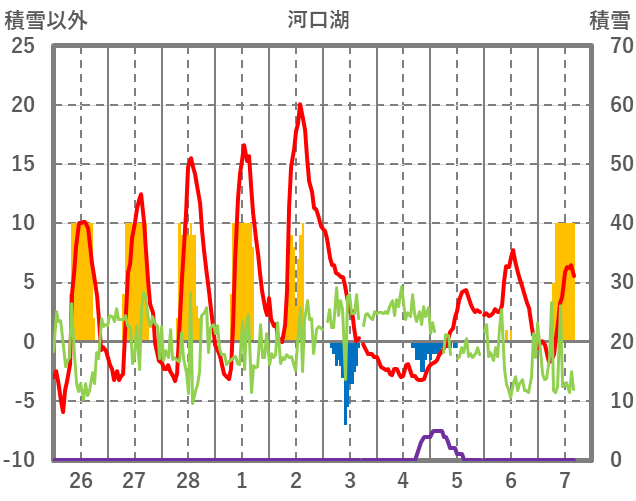 | 日 | 時 | 気温 | 降水 | 風向/風速 | 日照 | 積雪 | 降雪 |