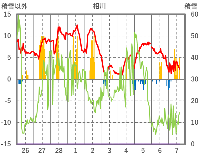 | 日 | 時 | 気温 | 降水 | 風向/風速 | 日照 | 積雪 | 降雪 |