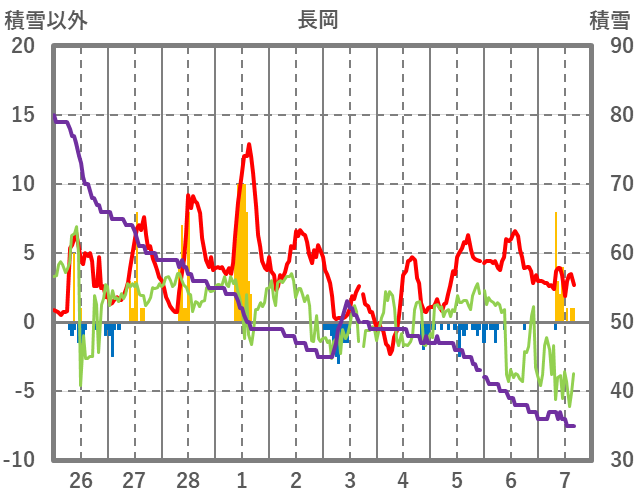| 日 | 時 | 気温 | 降水 | 風向/風速 | 日照 | 積雪 | 降雪 |