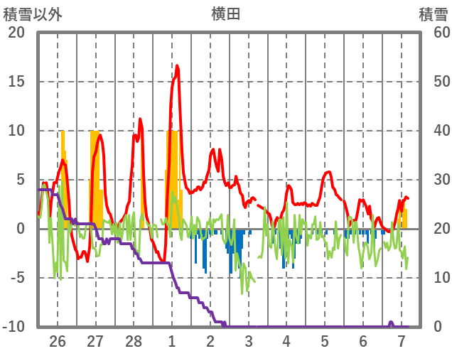 | 日 | 時 | 気温 | 降水 | 風向/風速 | 日照 | 積雪 | 降雪 |