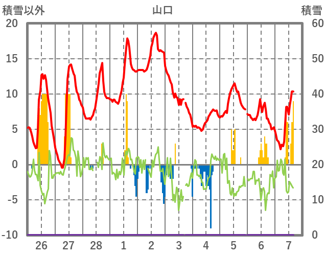 | 日 | 時 | 気温 | 降水 | 風向/風速 | 日照 | 積雪 | 降雪 |