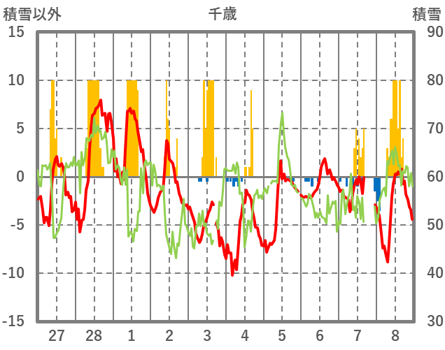 | 日 | 時 | 気温 | 降水 | 風向/風速 | 日照 | 積雪 | 降雪 |