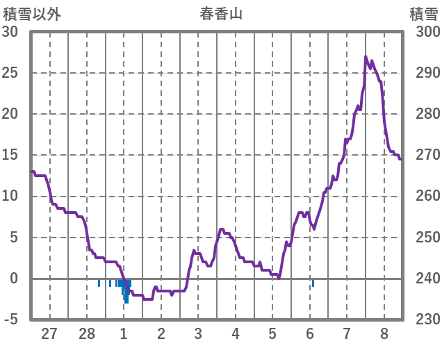 | 日 | 時 | 気温 | 降水 | 風向/風速 | 日照 | 積雪 | 降雪 |