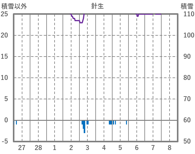 | 日 | 時 | 気温 | 降水 | 風向/風速 | 日照 | 積雪 | 降雪 |