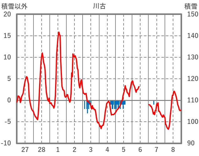 | 日 | 時 | 気温 | 降水 | 風向/風速 | 日照 | 積雪 | 降雪 |