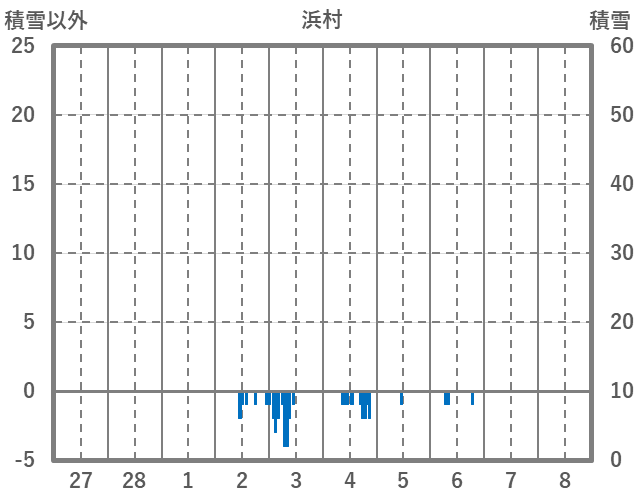 | 日 | 時 | 気温 | 降水 | 風向/風速 | 日照 | 積雪 | 降雪 |