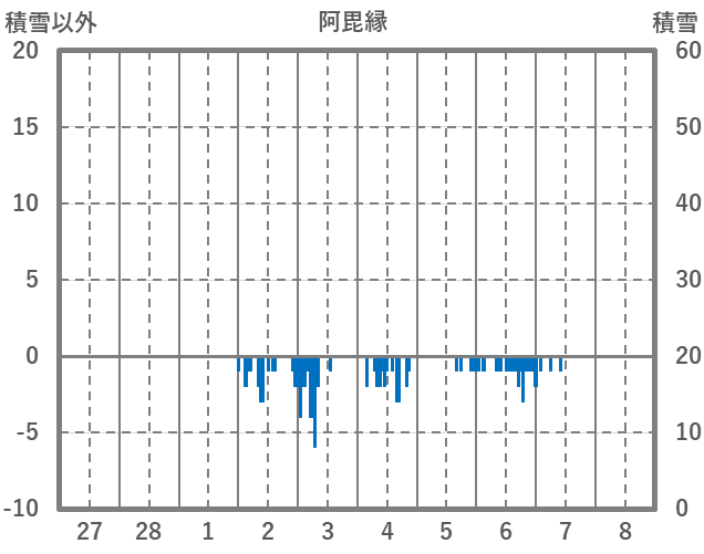 | 日 | 時 | 気温 | 降水 | 風向/風速 | 日照 | 積雪 | 降雪 |