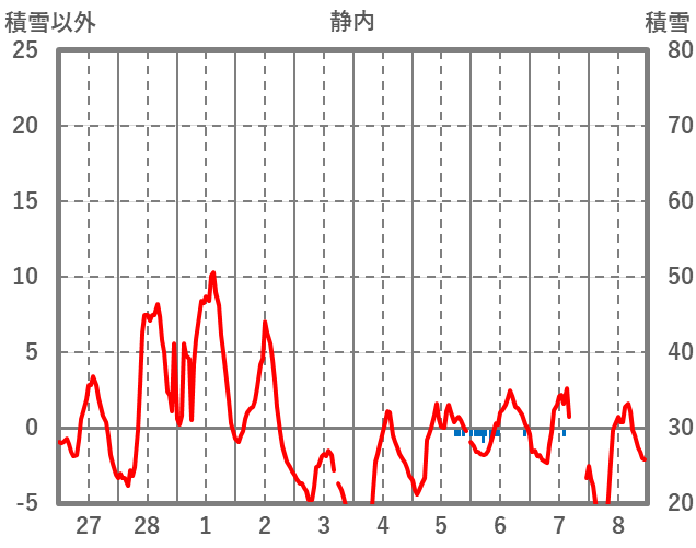 | 日 | 時 | 気温 | 降水 | 風向/風速 | 日照 | 積雪 | 降雪 |