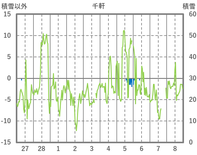 | 日 | 時 | 気温 | 降水 | 風向/風速 | 日照 | 積雪 | 降雪 |
