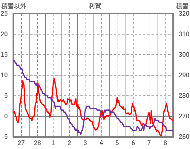 | 日 | 時 | 気温 | 降水 | 風向/風速 | 日照 | 積雪 | 降雪 |