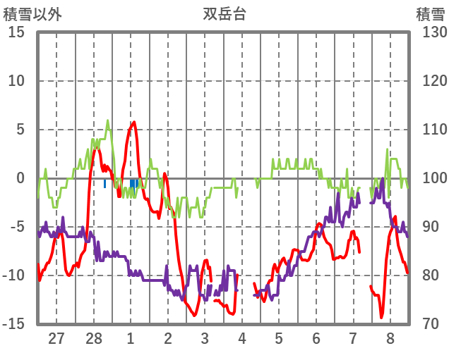 | 日 | 時 | 気温 | 降水 | 風向/風速 | 日照 | 積雪 | 降雪 |