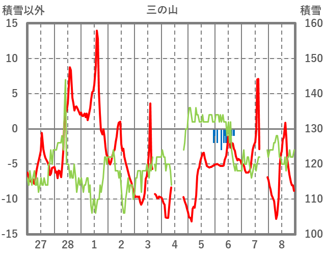 | 日 | 時 | 気温 | 降水 | 風向/風速 | 日照 | 積雪 | 降雪 |