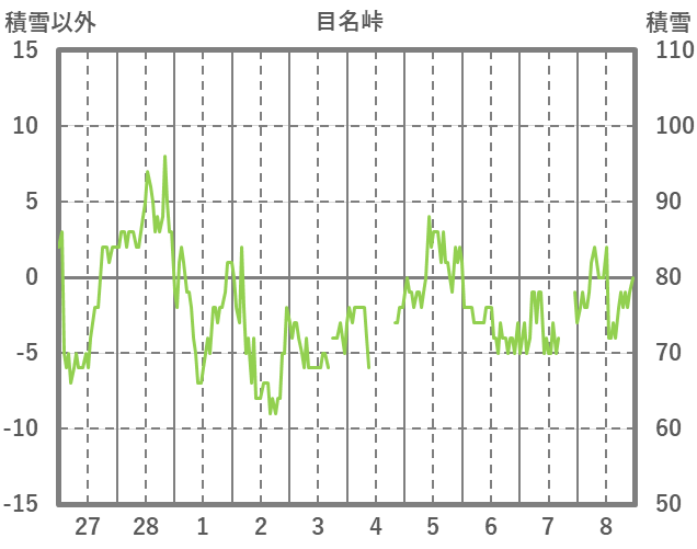 | 日 | 時 | 気温 | 降水 | 風向/風速 | 日照 | 積雪 | 降雪 |