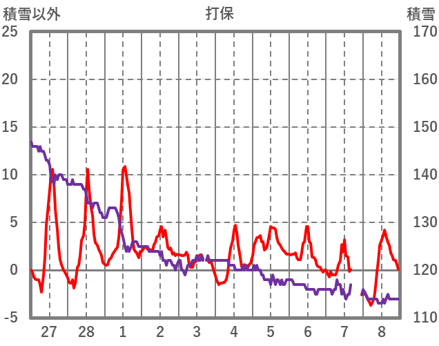 | 日 | 時 | 気温 | 降水 | 風向/風速 | 日照 | 積雪 | 降雪 |