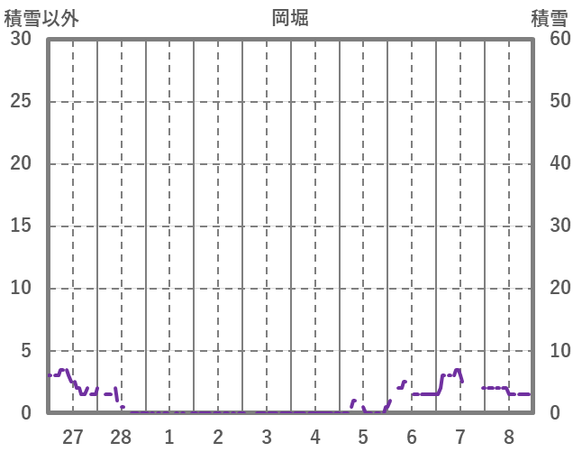 | 日 | 時 | 気温 | 降水 | 風向/風速 | 日照 | 積雪 | 降雪 |