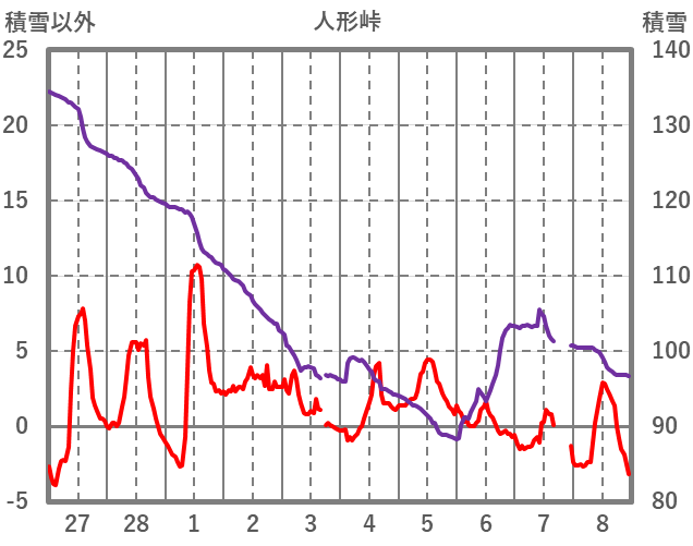 | 日 | 時 | 気温 | 降水 | 風向/風速 | 日照 | 積雪 | 降雪 |