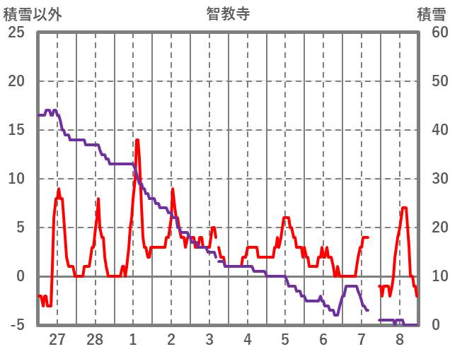 | 日 | 時 | 気温 | 降水 | 風向/風速 | 日照 | 積雪 | 降雪 |