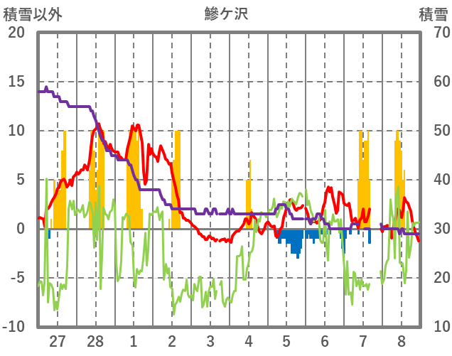 | 日 | 時 | 気温 | 降水 | 風向/風速 | 日照 | 積雪 | 降雪 |