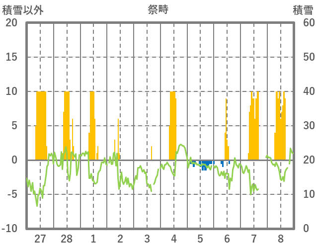| 日 | 時 | 気温 | 降水 | 風向/風速 | 日照 | 積雪 | 降雪 |