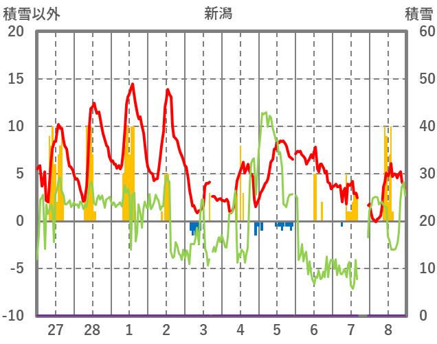 | 日 | 時 | 気温 | 降水 | 風向/風速 | 日照 | 積雪 | 降雪 |