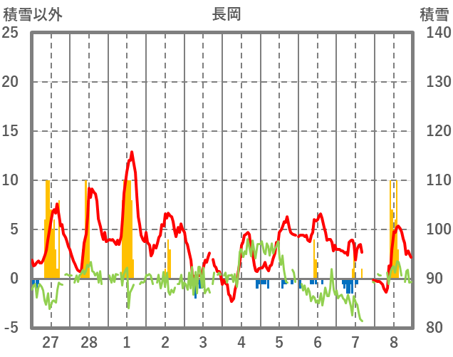 | 日 | 時 | 気温 | 降水 | 風向/風速 | 日照 | 積雪 | 降雪 |