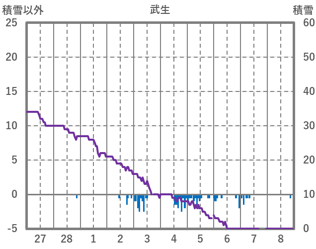| 日 | 時 | 気温 | 降水 | 風向/風速 | 日照 | 積雪 | 降雪 |