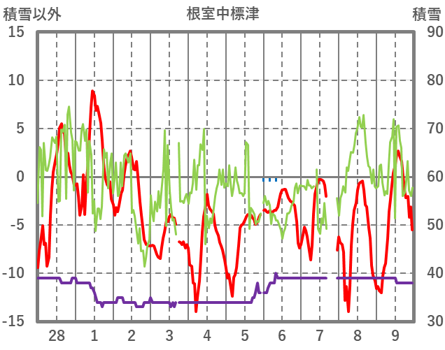 | 日 | 時 | 気温 | 降水 | 風向/風速 | 日照 | 積雪 | 降雪 |