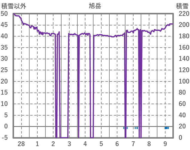 | 日 | 時 | 気温 | 降水 | 風向/風速 | 日照 | 積雪 | 降雪 |