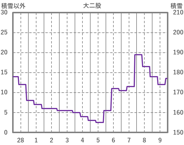 | 日 | 時 | 気温 | 降水 | 風向/風速 | 日照 | 積雪 | 降雪 |