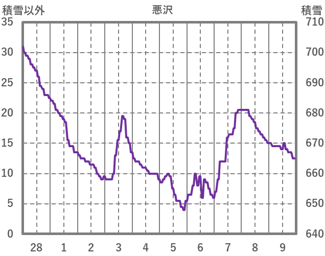 | 日 | 時 | 気温 | 降水 | 風向/風速 | 日照 | 積雪 | 降雪 |