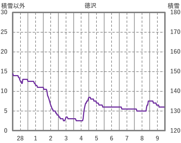 | 日 | 時 | 気温 | 降水 | 風向/風速 | 日照 | 積雪 | 降雪 |