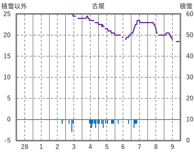 | 日 | 時 | 気温 | 降水 | 風向/風速 | 日照 | 積雪 | 降雪 |